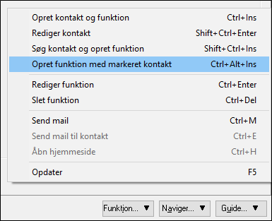 Vælg 'Opret kontakt' og 'Funktion'