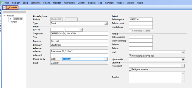 Vælg Type – Er kontakten Privat eller Erhverv?